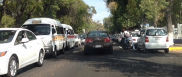 Morelia, Michoacán, (MiMorelia.com).- Un grupo de trabajadores del volante arribaron a la Calzada Ventura Puente minutos antes del medio día para exigir una mesa de diálogo con la titular de la Secretaría de Finanzas y Administración, Marcela Figueroa Aguilar, quien desconocía la supuesta mesa pactada con los taxistas lo que obligó a éstos a bloquear la circulación vehicular de la arteria afectando a un sinnúmero de automovilistas.